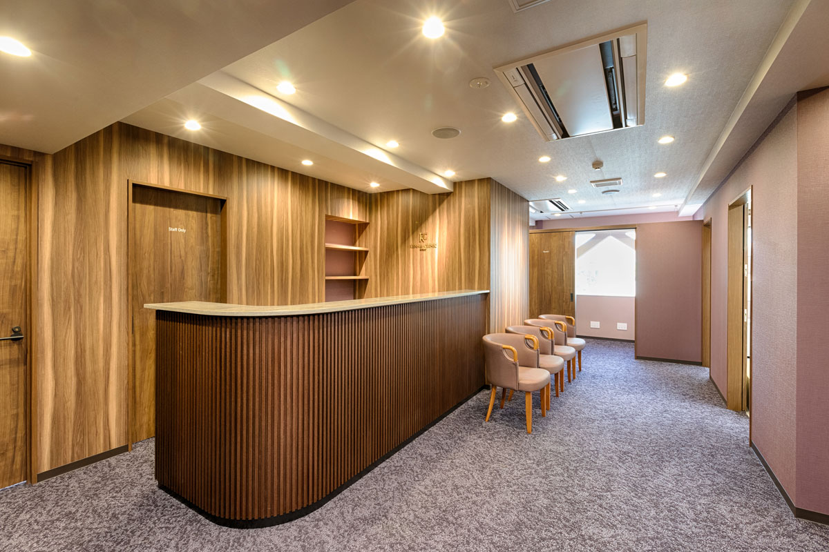 インバウンド需要が高いクリニックとの事で、和の要素を入れた、落ち着いたインテリアをご提案しました。